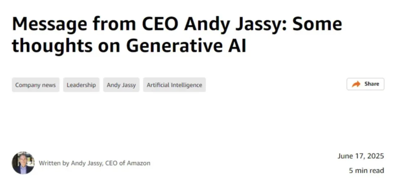 亚马逊首席执行官Andy Jassy早在今年 6月曾经发布公告表示,公司将在未来几还会逐步减少员工数量,主要原因是公司将更加依赖生成式AI工具来完成许多工作任务。并希望通过自然流失(attrition)实现部分岗位的精简,即员工离职后不再补招替代者。