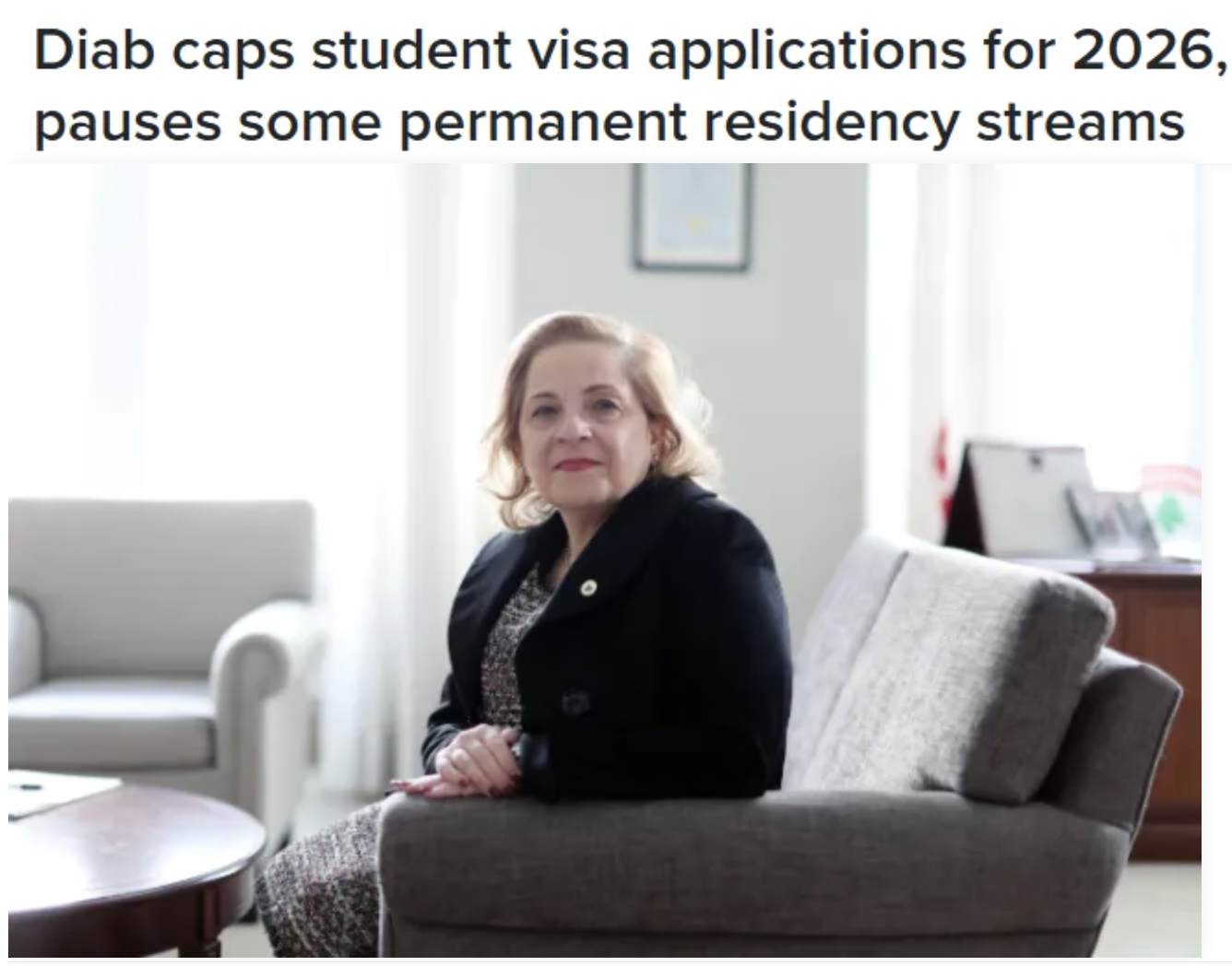 随后出现了联邦上限、新减少的临时居民和外国工作许可,以及他所谓的“新国际学生签证两年空档期”。