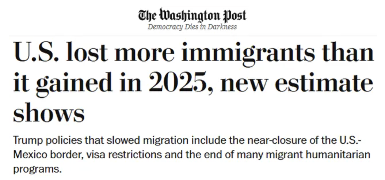 根据布鲁金斯学会温迪·埃德尔伯格(Wendy Edelberg)、塔拉·沃森(Tara Watson)以及保守派美国企业研究所斯坦·维乌格尔(Stan Veuger)基于他们在去年夏天首次发表的模型最新更新的估算,2025年美国的净移民数量减少了1万至29.5万人。 虽然美国移民与海关执法局的抓捕和遣返行动备受关注,但报告作者将移民大幅下降的主要原因归咎于川普政府主导的新入境政策,从几乎关闭美墨边境,到新的签证限制、收费措施,以及终止多数人道主义移民项目(几乎包括全部难民项目)。 另一个因素是遣返。经济学家估计2025年约有30万人被遣返,这一数字低于川普政府所宣称的大约60万。 布鲁金斯学会的估算与上周无党派国会预算办公室(CBO)发布的另一组数据不同。后者显示2025年净移民约为40万。CBO的模型假设被遣返的移民较少,更多人是在2025年自愿离开美国,而布鲁金斯模型对此给出的数字更高。 与此同时,川普政府以及包括移民研究中心等在内的倡导移民限制的智库表示,2025年的净移民负增长远高于布鲁金斯的估算,原因在于他们假设的离境和遣返人数更高。 2025年的官方移民统计数据要到今年晚些时候才会公布,且很可能不会精确统计多少人离开美国。 研究人员表示,美国在2026年还将继续出现“移民流出大于流入”的趋势,并将对经济和人口增长带来长期影响。 他们在随附研究论文中写道:“移民放缓意味着就业、GDP和消费支出增长将更疲软。” 经济学家预测,2026年净移民可能比去年更低,但也警告称移民水平仍高度不确定,部分原因在于“近年来数据透明度下降”,例如国务院自5月起暂停发布签证签发数据。 专家称,美国可能正处于移民拐点。在拜登政府期间,每年有200万至300万移民进入美国,这一浪潮推动美国劳动力中的外籍劳动者比例达到历史最高水平,支撑了疫情后美国的经济繁荣。 对于川普政府而言,目标是驱逐和阻止移民。川普在去年8月的社交媒体上宣称:“承诺已兑现。50年来首次实现净移民负增长!”然而关于2025年移民水平的官方数据尚未发布。过去一年里,白宫多次声称移民减少有助于降低犯罪、提高本土劳工的就业和住房机会,但这些说法受到经济学家与专家的质疑。 川普政府也一直强调有大量移民离境。国土安全部在12月声称,自2025年1月以来,有190万无证移民“自愿离境”。相比之下,布鲁金斯学会估计去年自愿离境的合法与非法移民总数只有20万至40万。 包括彼得森国际经济研究所高级研究员、前商务部经济学家杰德·科尔科(Jed Kolko)在内的部分经济学家表示,他们认为川普政府错误地使用了人口普查局数据来推算这些数字。 布鲁金斯报告的经济学家表示,去年与今年的净移民流失已在全国范围内产生经济影响。他们的估算显示,随着部分移民离开以及留在美国的移民减少消费,2025至2026年的消费者支出预计将减少600亿至1100亿美元。 与此同时,由于移民限制,美国经济新增就业岗位减少。根据上周劳工部发布的数据,去年美国新增就业人数骤降,为大衰退以来增长第二弱的一年。 经济学家们写道,他们预计负净移民数据对物价和通胀影响有限,因为企业在劳动力需求下降的同时也将面临商品和服务需求下降。 研究人员通过为移民流入(包括在国外签发的绿卡和临时签证、无证移民和人道主义假释)和流出(包括遣返与自愿离境)设定高低区间来计算2025和2026年的净移民预测。 在川普政府大规模收紧移民政策之前,美国人口与劳动力的几乎全部增长均由移民推动,这源于本土人口老龄化与出生率下滑。