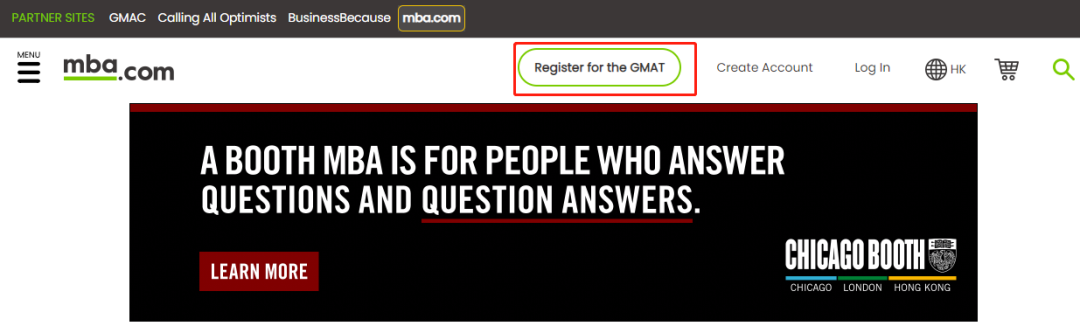 http://www.mba.com/us,在首页选择"注册GMAT考试";