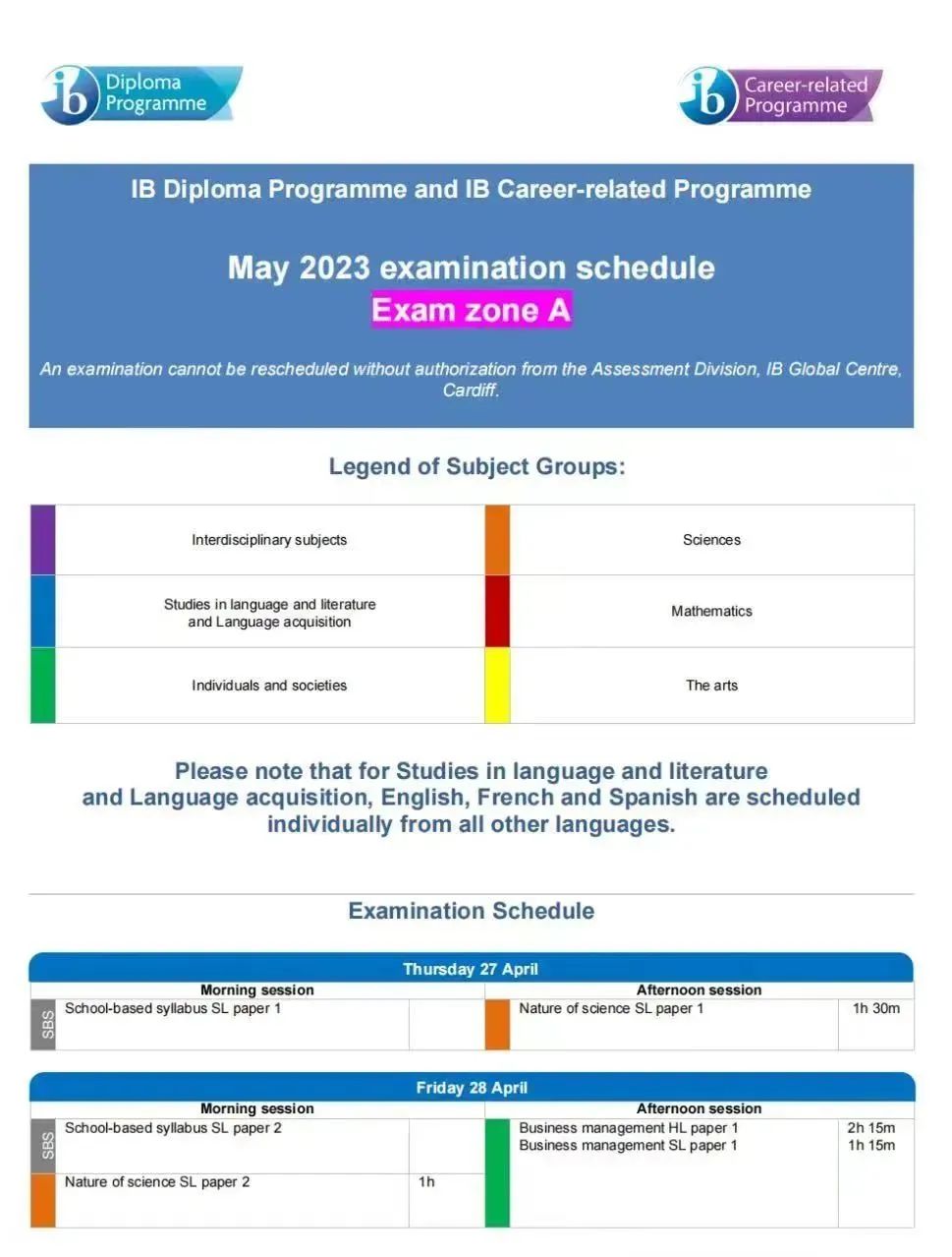 2023年IB大考将根据不同的时区来划分为A/B/C三个考区进行考试: