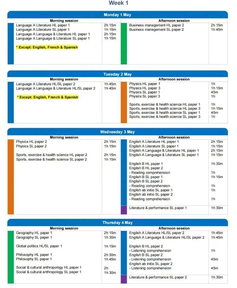 A-Level三大考试局5/6月考试季考试安排: