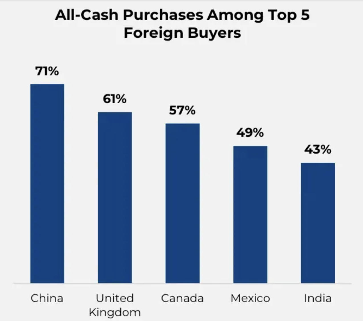 报告称,2024年至2025年期间,56%的非居民外国买家选择全现金支付,而居住在美国的外国买家中这一比例为39%。